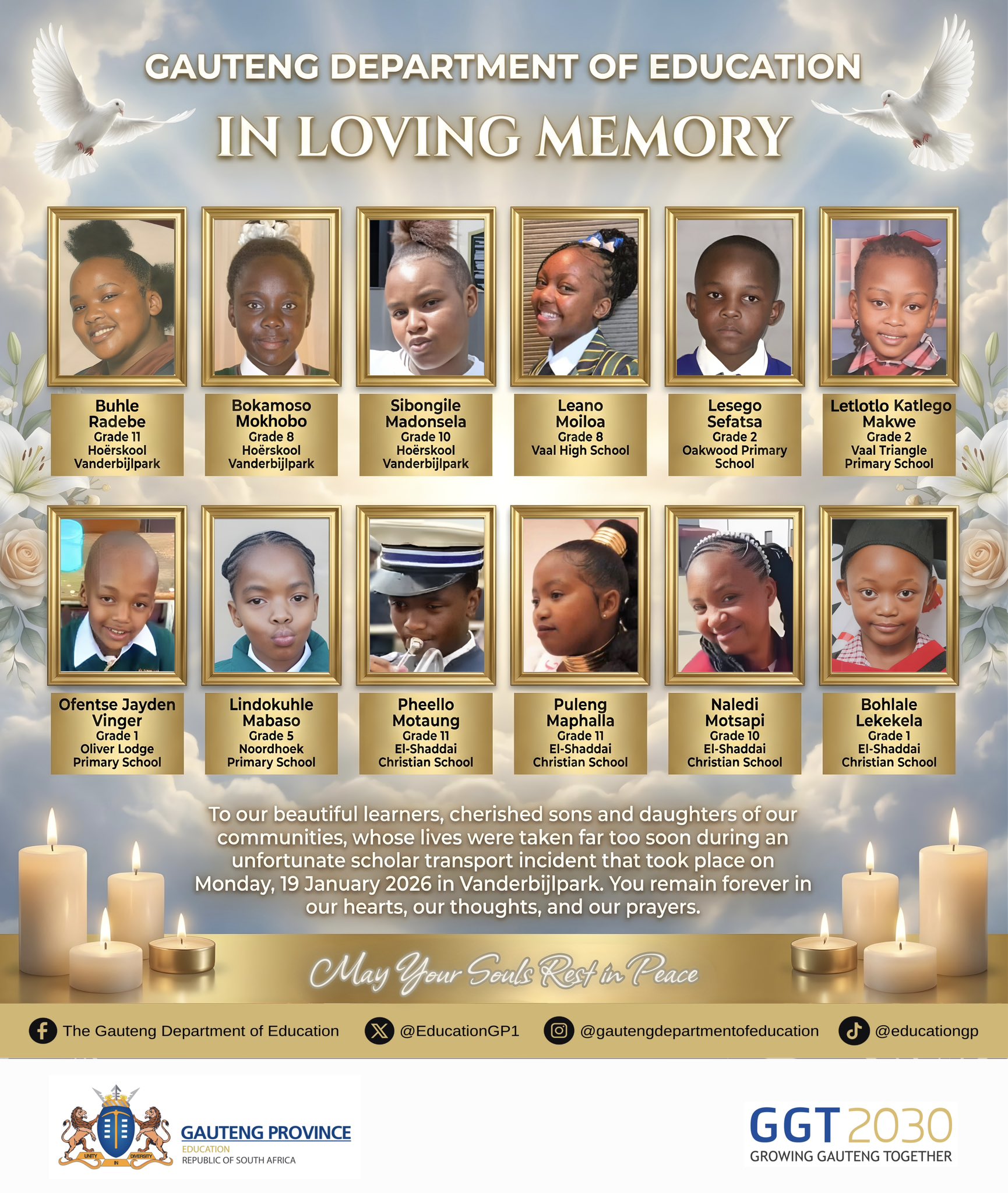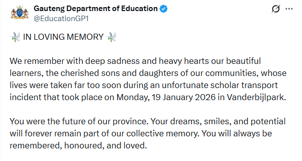 Meanwhile, the Gauteng Education released names and photos of the victims.