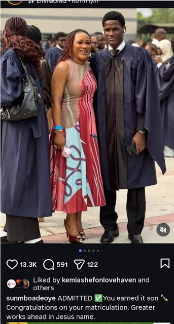 In her emotional caption, Sunmbo highlighted that Zion’s achievement was well-deserved, emphasizing hard work, dedication, and God’s grace. She wrote, “You earned it, son. Congratulations on your matriculation. Greater works ahead in Jesus’ name,” while also tagging Pan-Atlantic University and celebrating the Class of 2029. Her words resonated with many parents and youths, inspiring conversations around discipline, education, and purpose.