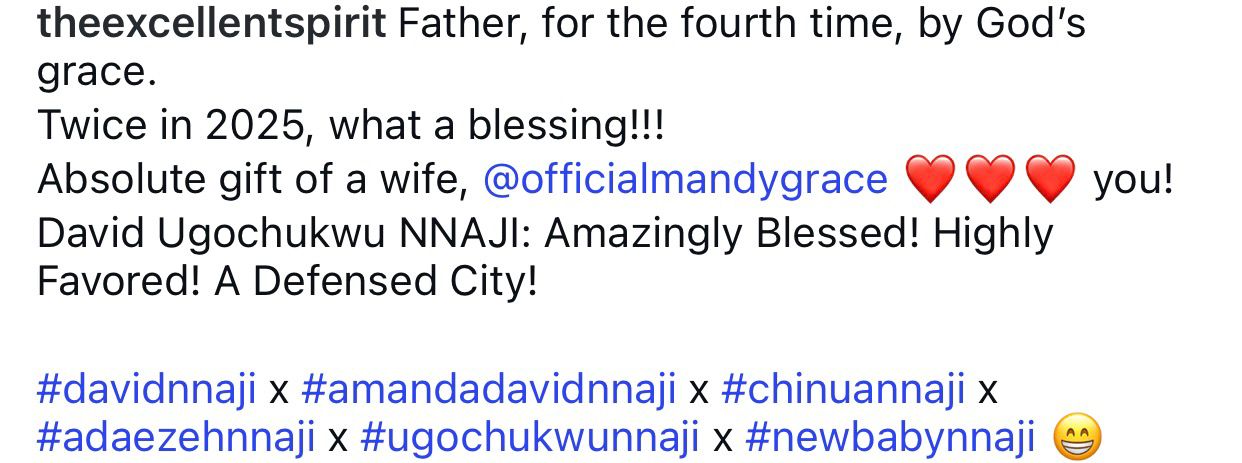 In his post, David Nnaji expressed gratitude to God and praised his wife for going through childbirth twice in one year.