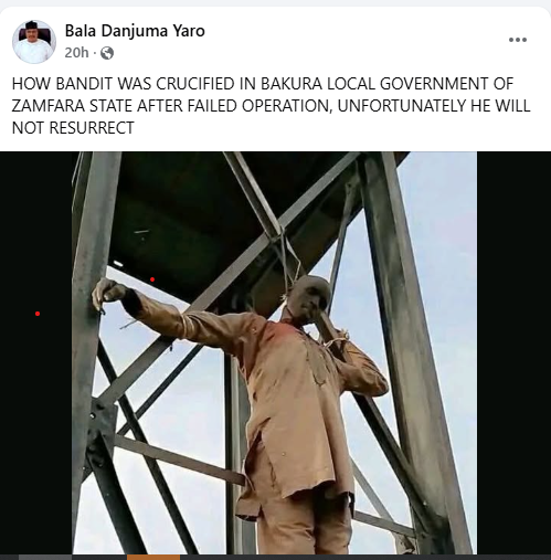 Angry residents have captured and crucified a suspected bandit after a failed operation in Zamfara State.