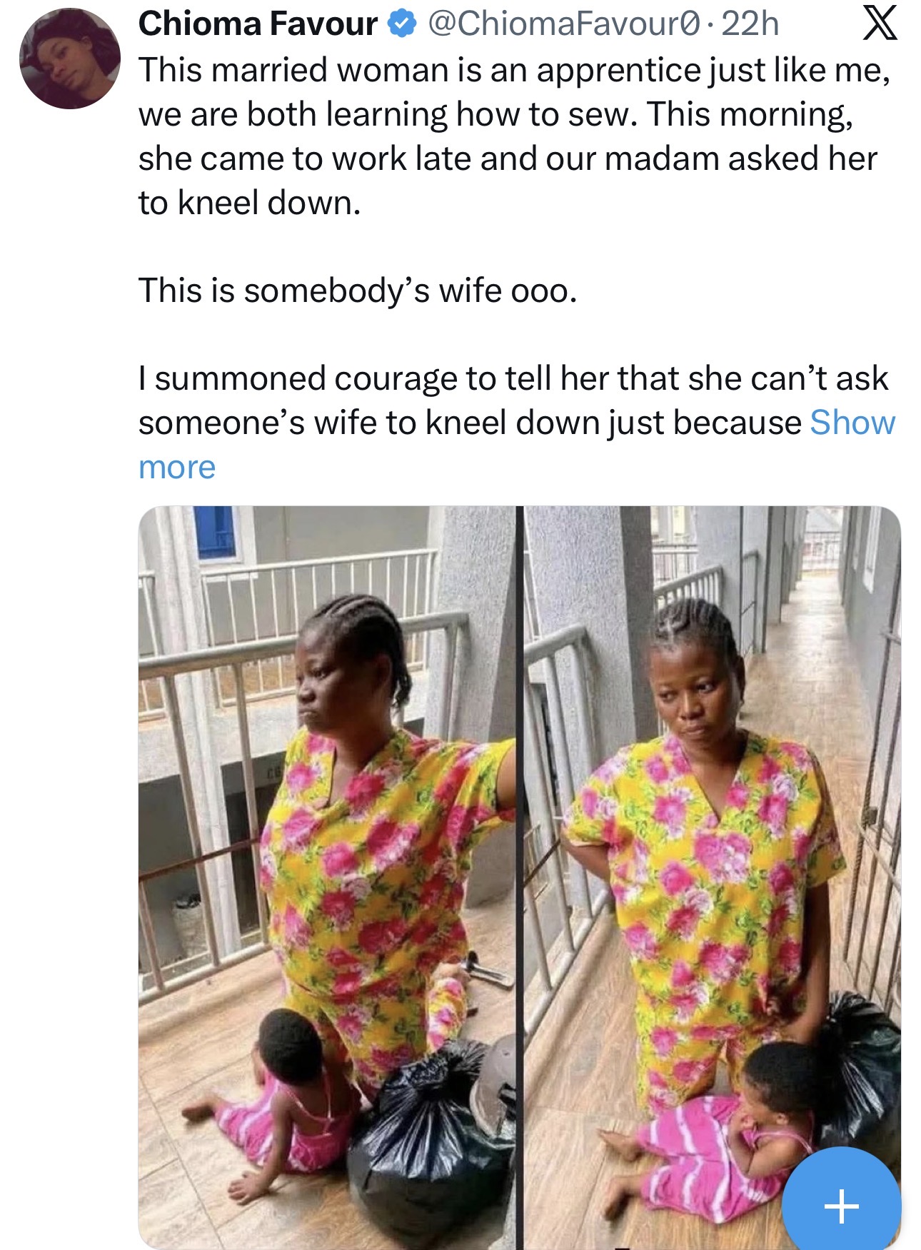 An X user has shared a troubling experience from her tailoring apprenticeship, sparking conversations online.