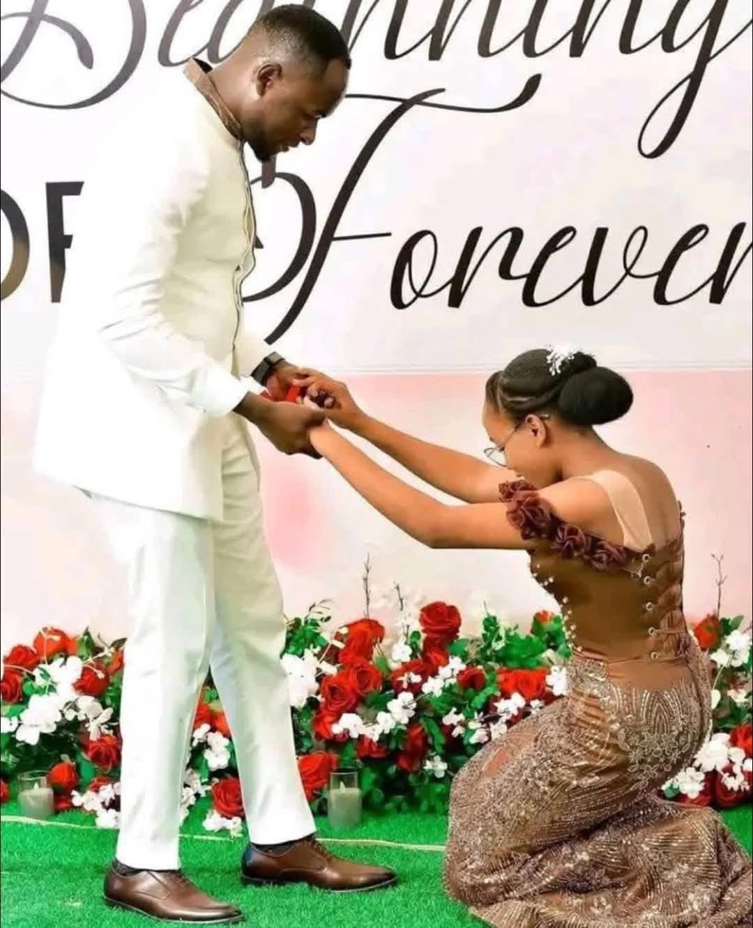 She stated this while reacting to a viral photo of a Nigerian lady who chose to kneel while her man proposed marriage to her.