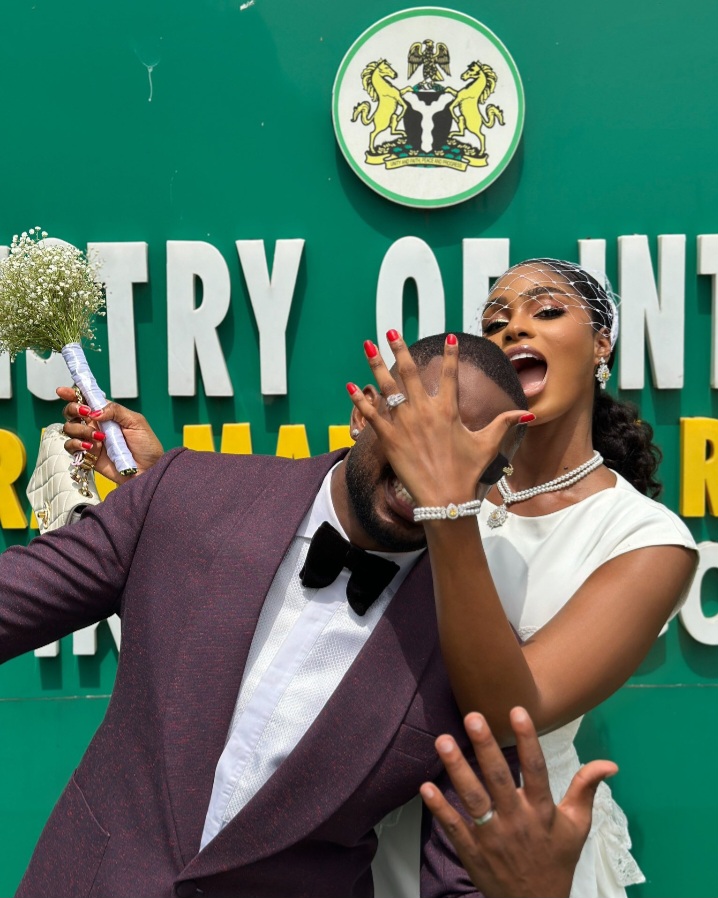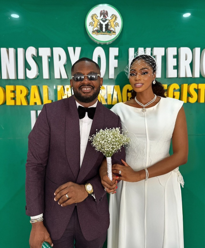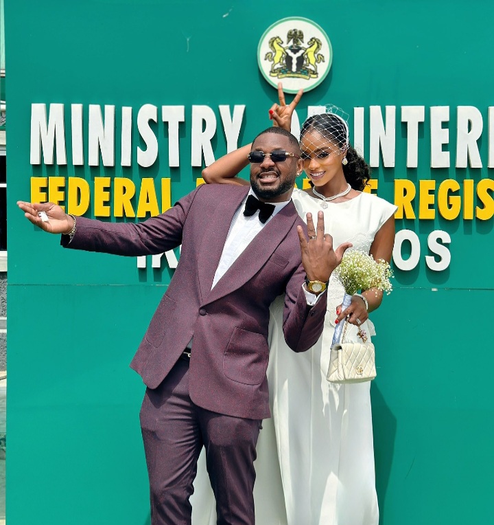 The intimate event, held away from the glitz of traditional weddings, saw Cross Okonkwo looking dapper in a brown suit, while his bride chose a classic white outfit that exuded elegance and simplicity. Photographs and videos from the ceremony show the couple sharing joyous moments outside the courthouse, capturing the significance of their commitment in a serene setting.