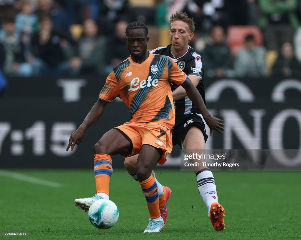 Kamaldeen Sulemana of Atalanta and Nicolò Bertola of Udinese in action during the Serie A match between Udinese Calcio and Atalanta (Photo by Timothy Rogers/Getty Images)