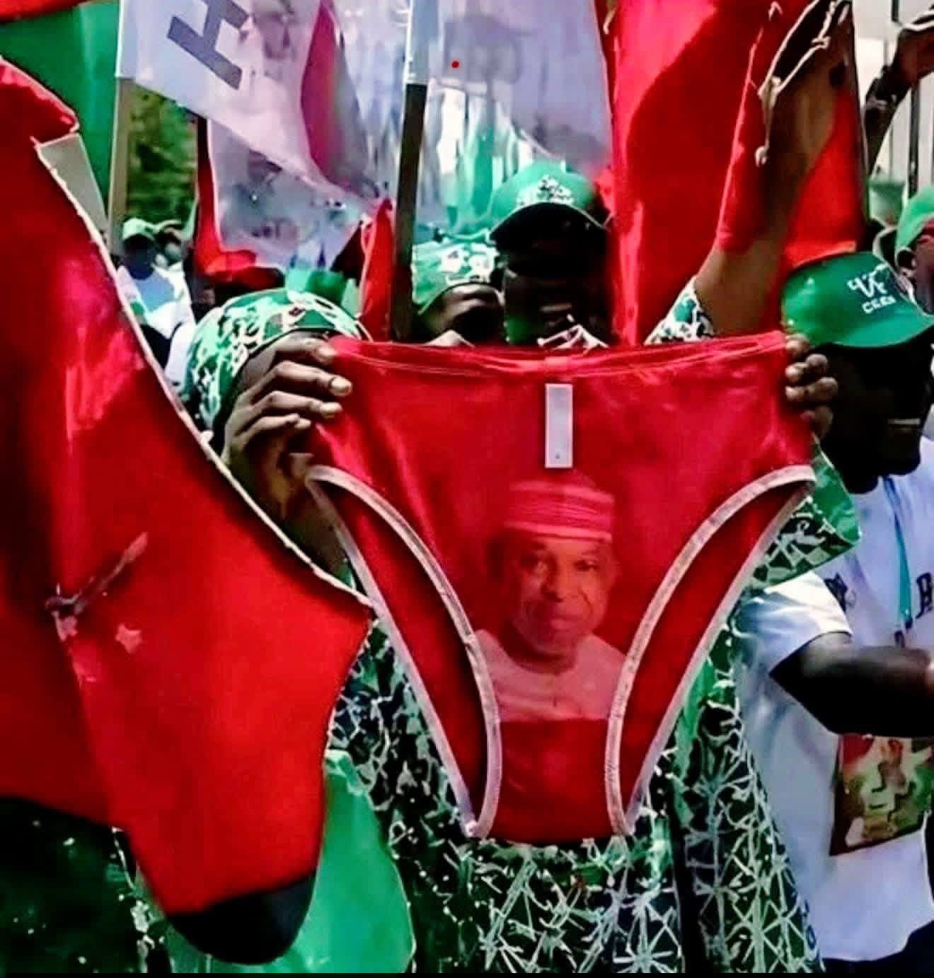 Residents of Kano received panties branded with the face of Kano Governor, Abba Kabir Yusuf, as part of the campaign materials distributed to them.