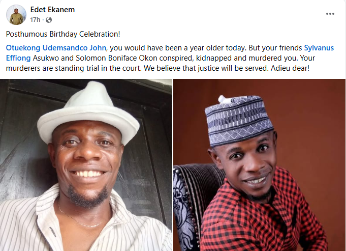 A Nigerian lecturer, Edet Ekanem, has marked the posthumous birthday of a colleague, Ubong Friday John, who was allegedly m8rdered…
