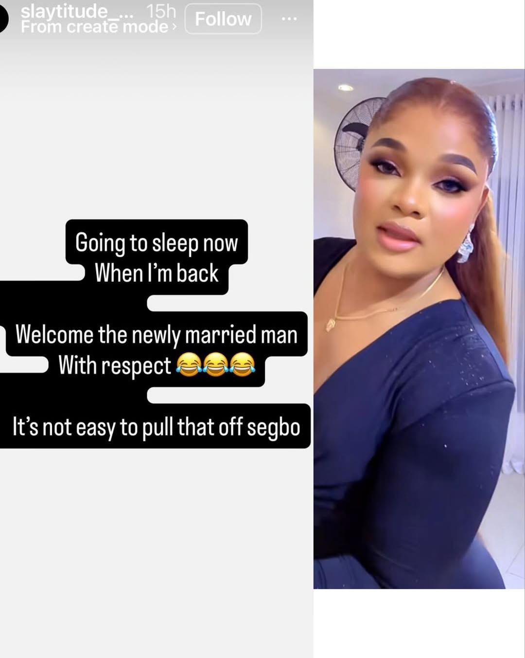 Reacting, Slaytitude released a video of himself dressed as a woman and wrote: “Na me marry, na una dey cry. I like as I am giving you people engagement.  The more you talk about it, the more your followers get to know me.”