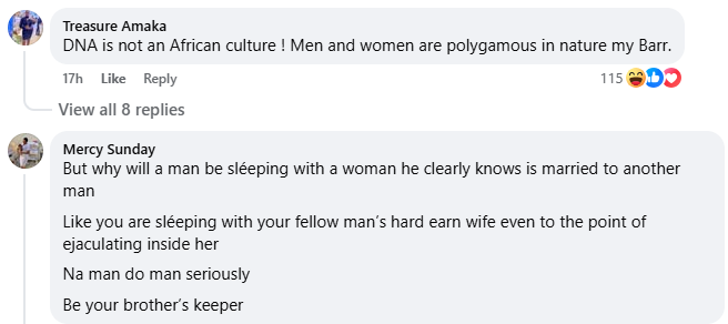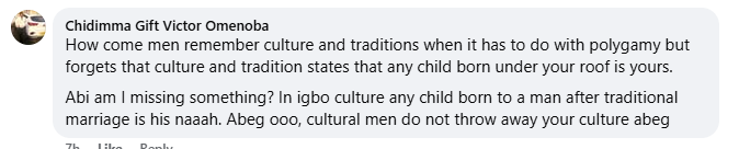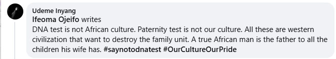 “DNA testing is not African culture. Paternity tests are not our culture. All these are western civilization that want to destroy the family unit. A true African man is the father to all the children his wife has,” one Ifeoma Ojeifo wrote.