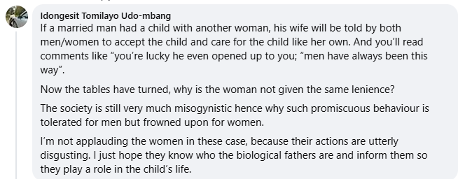 Several Nigerian women have reacted after human rights lawyer, Inibehe Effiong, shared his experience handling cases of paternity fraud.