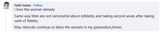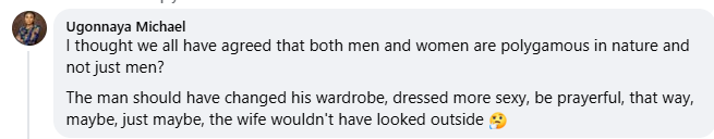 Some of the women reacted sarcastically to the post by taking a sarcastic dig at the justification for infidelity based on the claim that men are naturally polygamous.