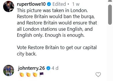 The former Chelsea FC and England captain reacted to an Instagram post shared by Rupert Lowe, leader of the Restore Britain party, which outlined the stance. Terry reportedly responded with three clapping emojis, interpreted by many as an endorsement.