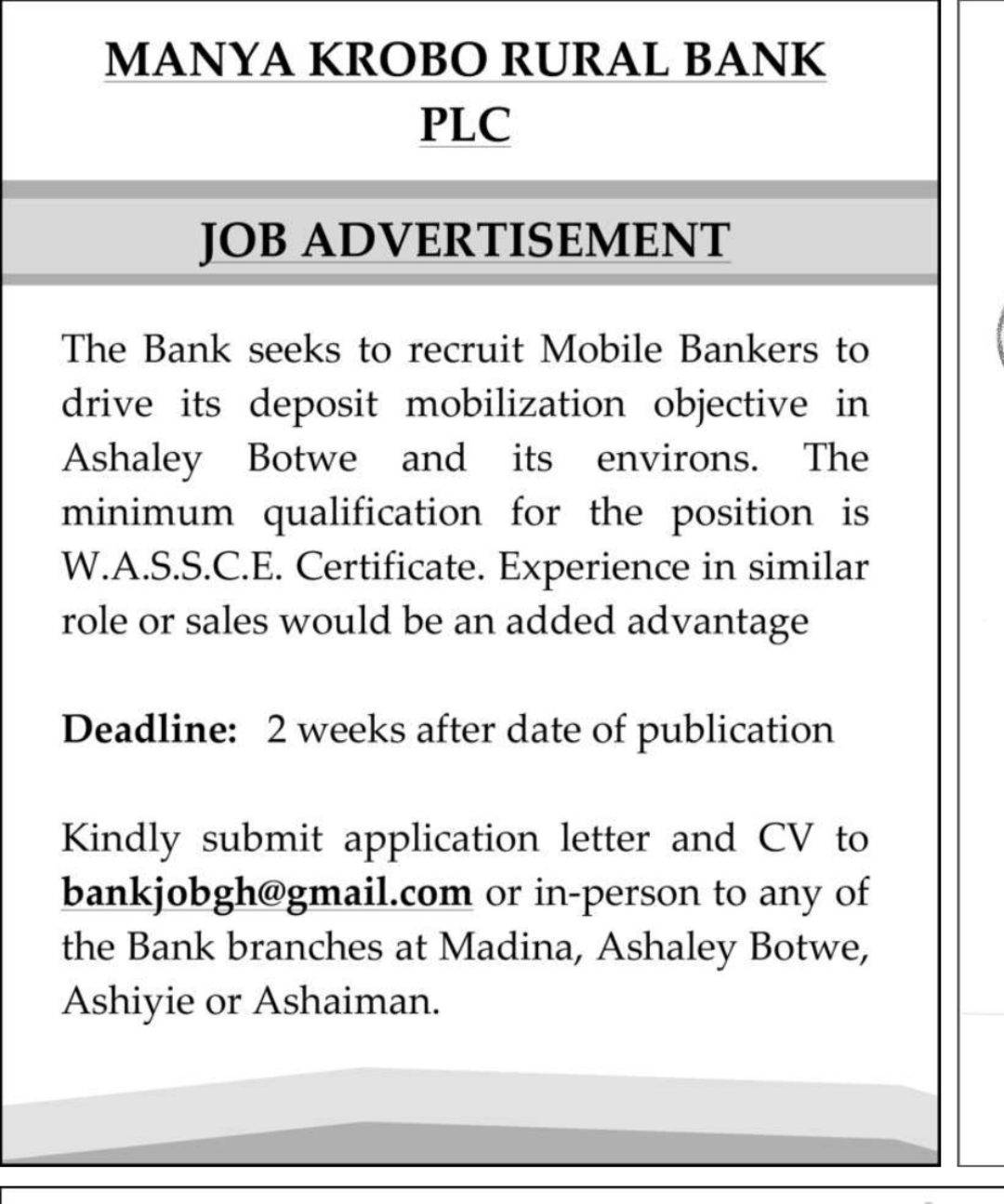 The post Friday: Advertised Jobs In Newspapers Today appeared first on The Ghana Report.