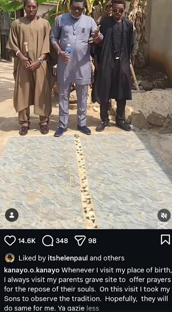 The award-winning actor took to his Instagram page to post a video capturing himself alongside his two sons as they paid a visit to the final resting place of his late parents. According to Kanayo, the visit was not a casual one but a long-standing tradition he observes whenever he returns to his hometown.