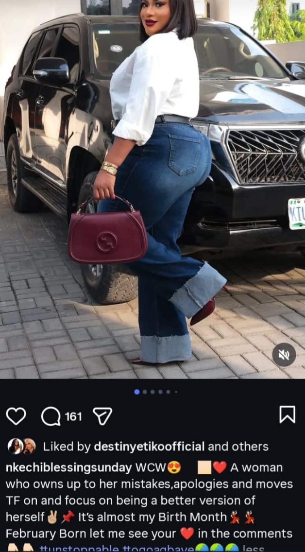 The post has since sparked mixed reactions online, with some fans applauding her maturity and honesty, while others remain divided over her initial actions. Nonetheless, Nkechi Blessing appears unfazed by lingering criticism, choosing instead to focus on self-improvement and positivity as she prepares to enter her birthday month in February.