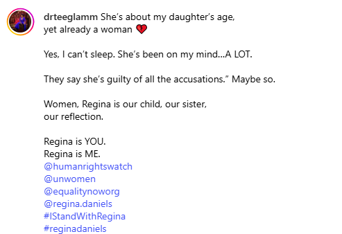 In a post on her Instagram page on Sunday, November 9, the United States trained medical doctor and mental health expert said she’s been having difficulty sleeping due to Regina’s ordeal.