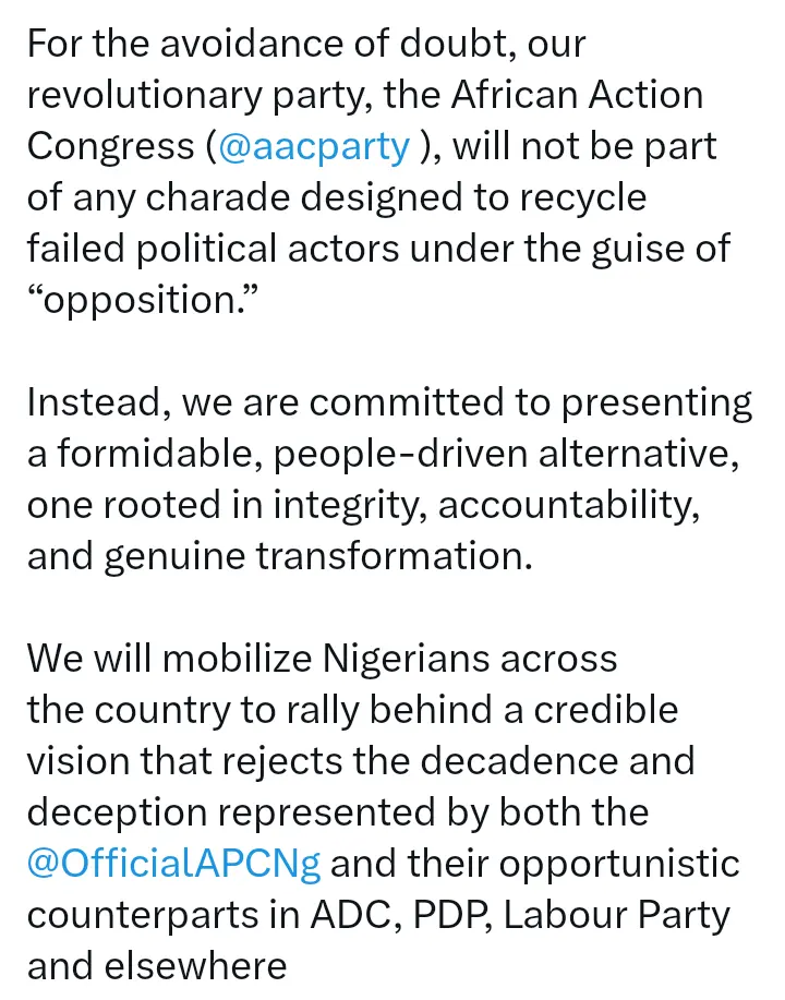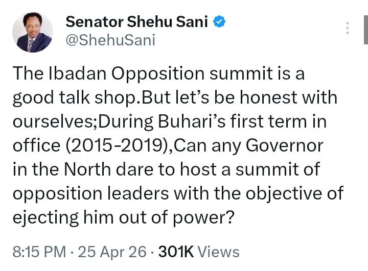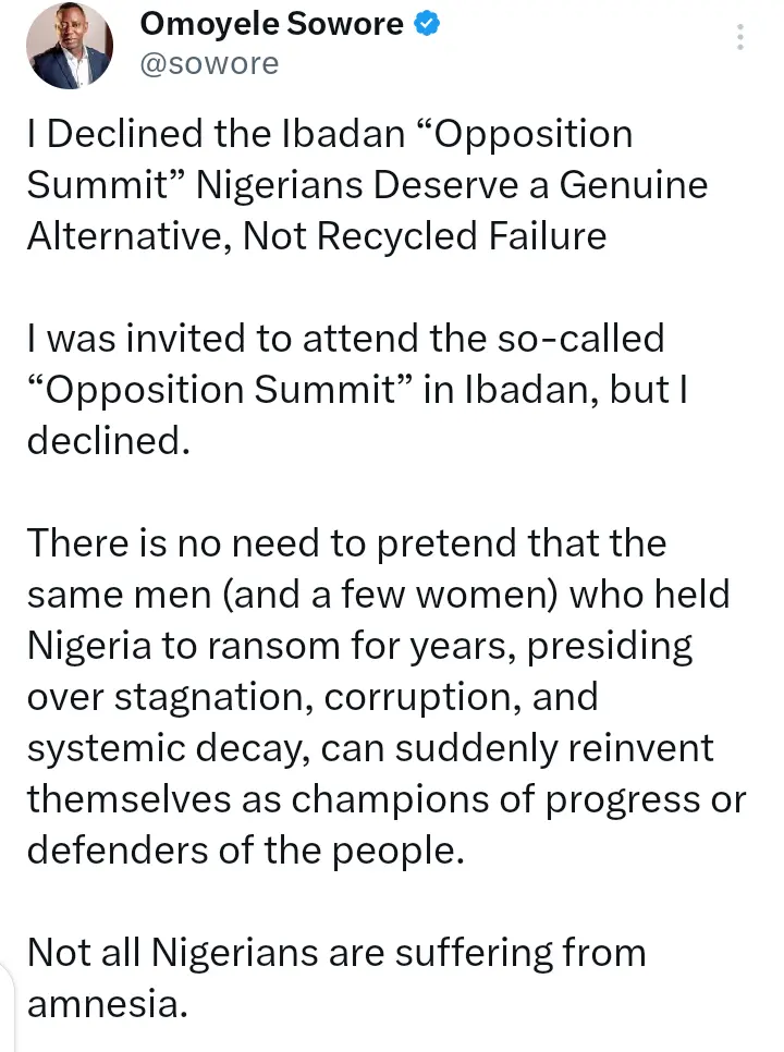This is coming after leaders of the opposition parties assembled in Ibadan to speak about the forthcoming presidential election in 2027.
