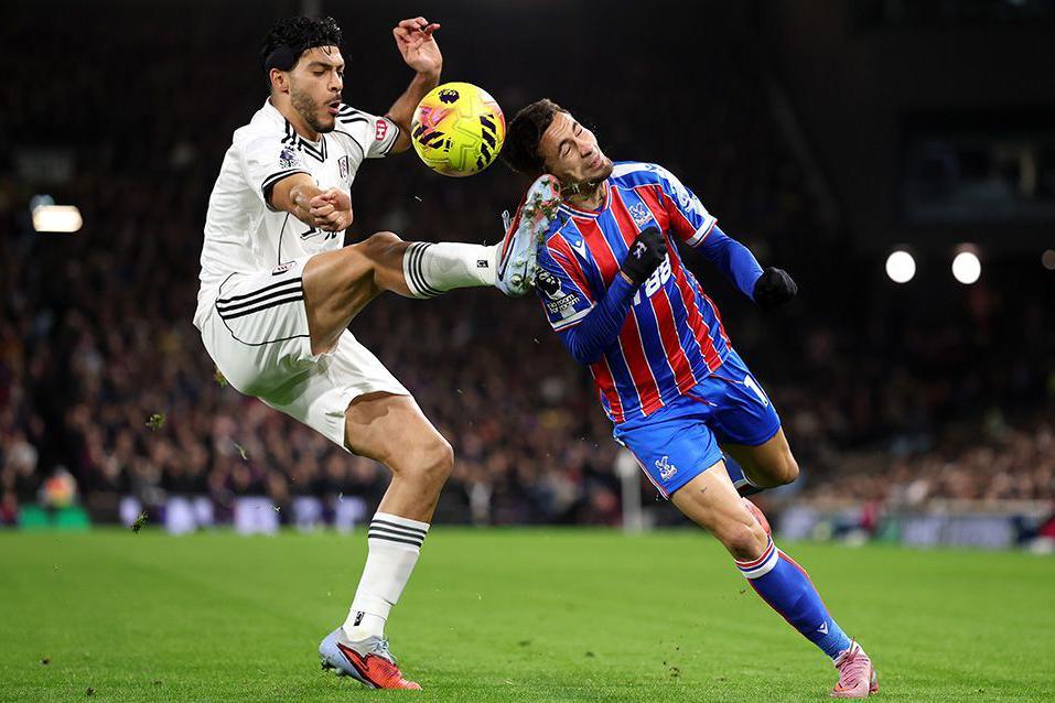 Crystal Palace’s Yeremy Pino battles for possession with Fulham’s Raul Jimenez during the Premier League match at Craven Cottage. Photo by Justin Setterfield