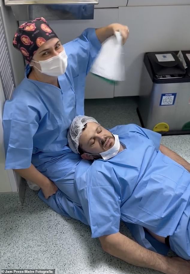 Birth photographers Patricia Vogel and Viviane Borges, who were said to be surprised by the father’s reaction in the delivery room, later recalled: ‘When we arrived, they were a bit anxious, but everything was going as expected.
