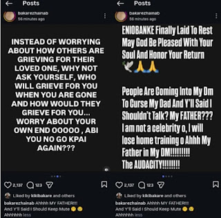 Bakare Zainab’s response has since generated conversations online about boundaries, empathy, and the toxic nature of social media commentary surrounding death and mourning.