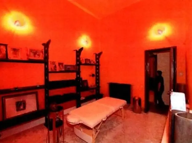 Paris prosecutors believe parts of the residence including a red-walled massage room may have been used to facilitate sexual abuse. Photographs taken during a 2019 police probe show various rooms in low light, along with personal items investigators cataloged during their search.