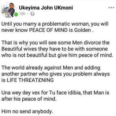 “I am the one wearing the shoes, and I know exactly where it pinches. I, UKmoni, have peacefully moved on with my life, and both families are well informed. I won’t be the first or the last to divorce, so please let UKmoni be.