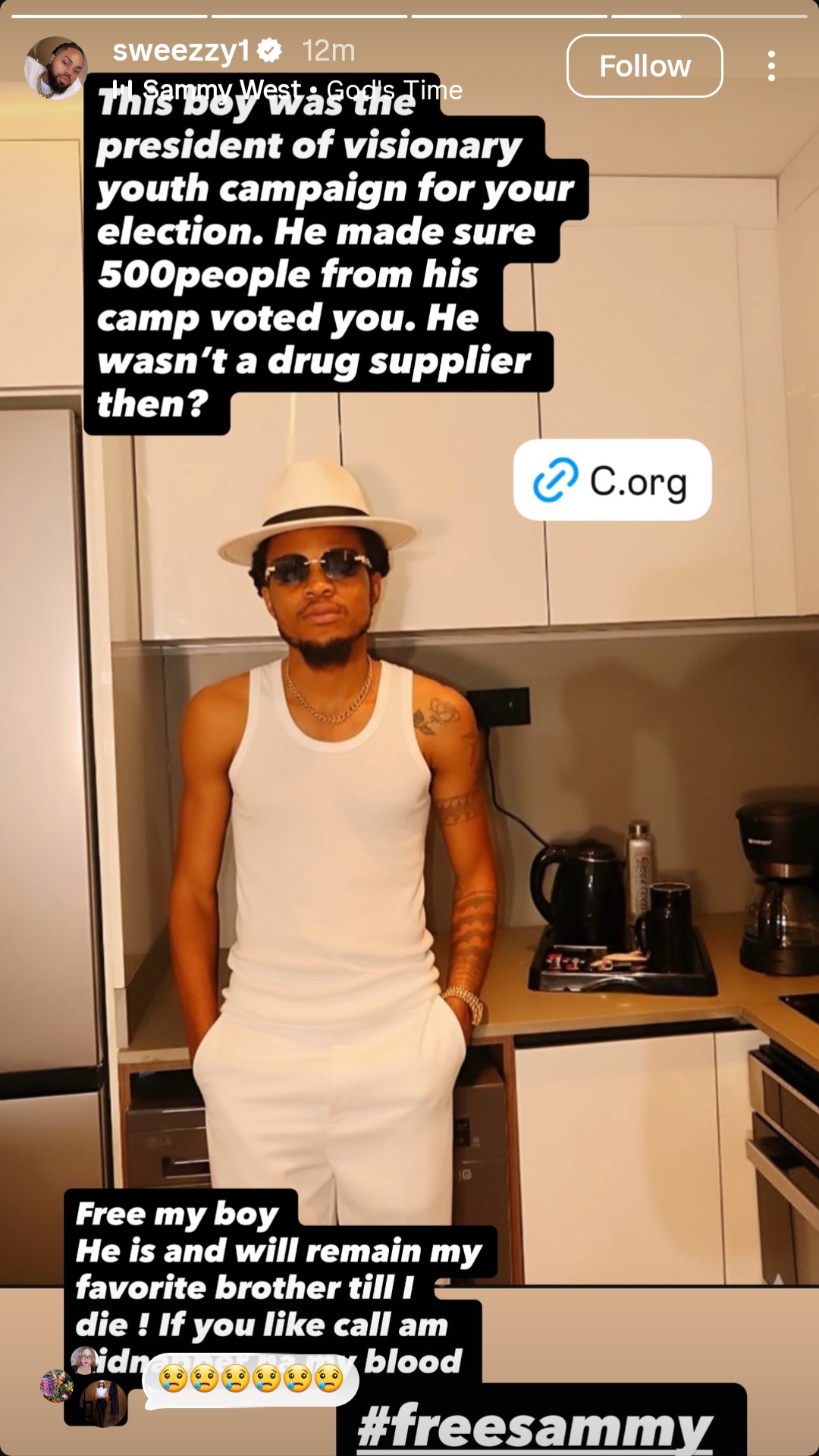 Lawrence went on to call for the release of his younger brother Sammy from detention. He told Ned that when Sammy was mobilising youths to vote for Ned, he did not see him as a drug addict but he is now tagging him one because Sammy defended Regina.