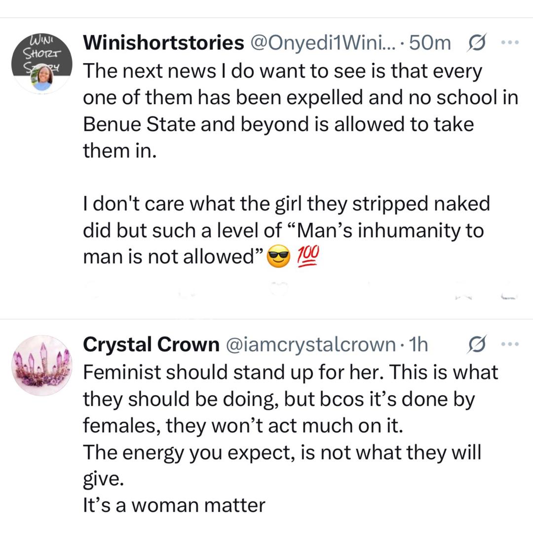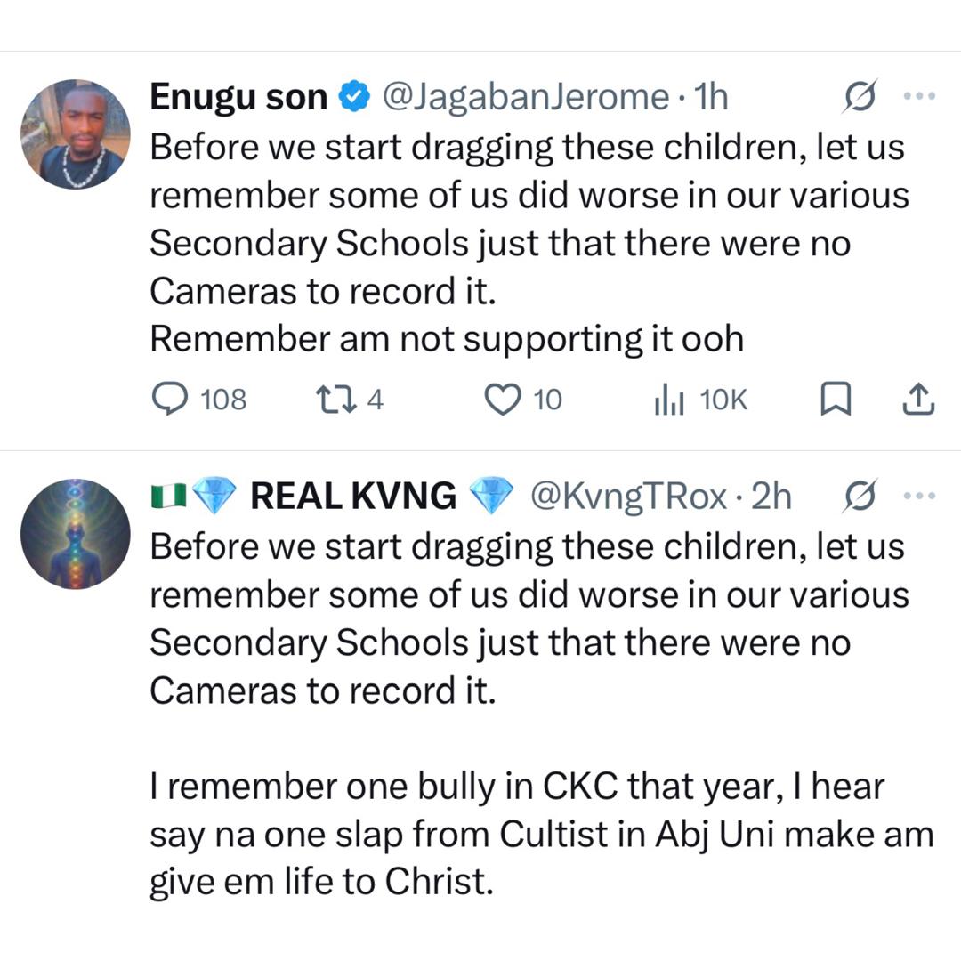 The X-user mentioned that the students are from a private school in the state. It is unclear what the victim did to have warranted the inhumane action meted on her.