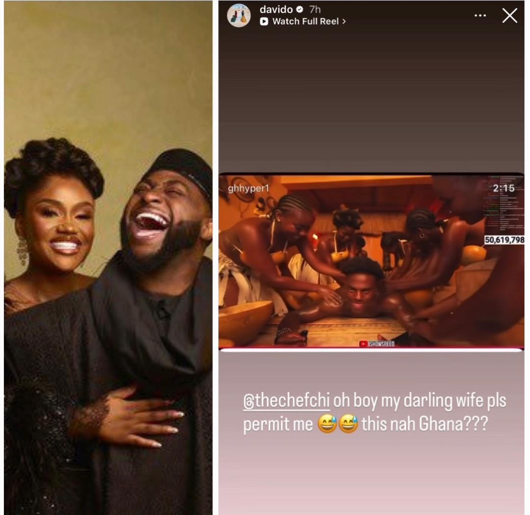 Check out Davido’s hilarious reaction to video of popular streamer, Ishowspeed, getting a massage from some Ghanaian ladies
