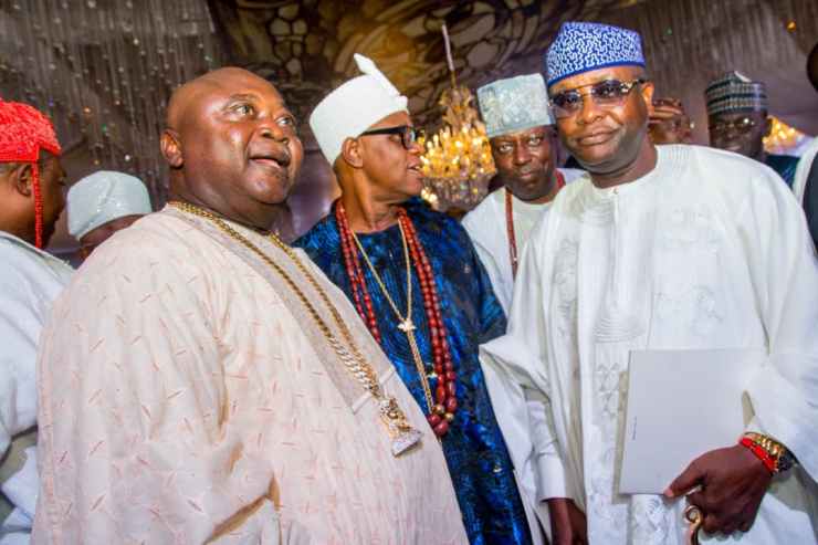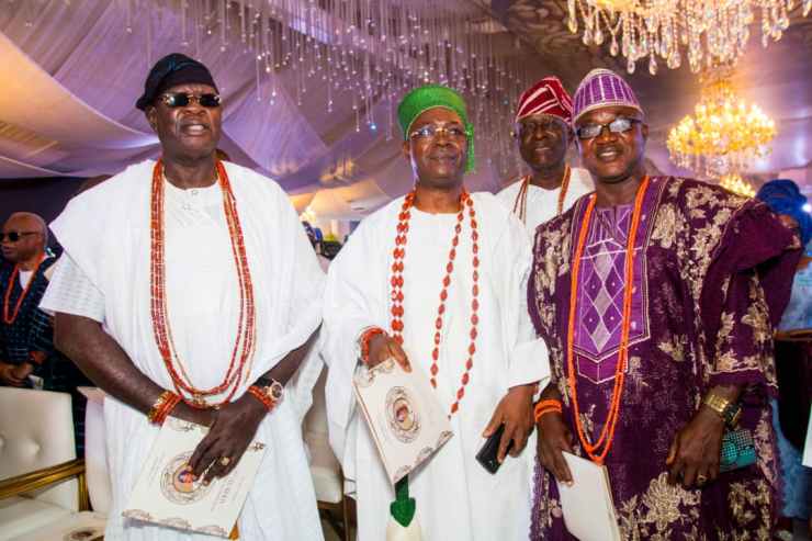 Others were the Ooni of Ife, Oba Adeyeye Ogunwusi; the Alaafin of Oyo, Oba Abimbola Owoade; Alake of Egbaland, Oba Adedotun Gbadebo; Erelu Oodua of Lagos, Erelu Abiola Dosumu; Chairman, Ovation Media Group, Aare Dele Momodu; CEO, Channels Television, John Momoh, and his wife, Olusola; Real Estate magnate, Sir Olu Okeowo and his wife, Adejoke; as well as Femi Falana (SAN) and Ladi Bakare.