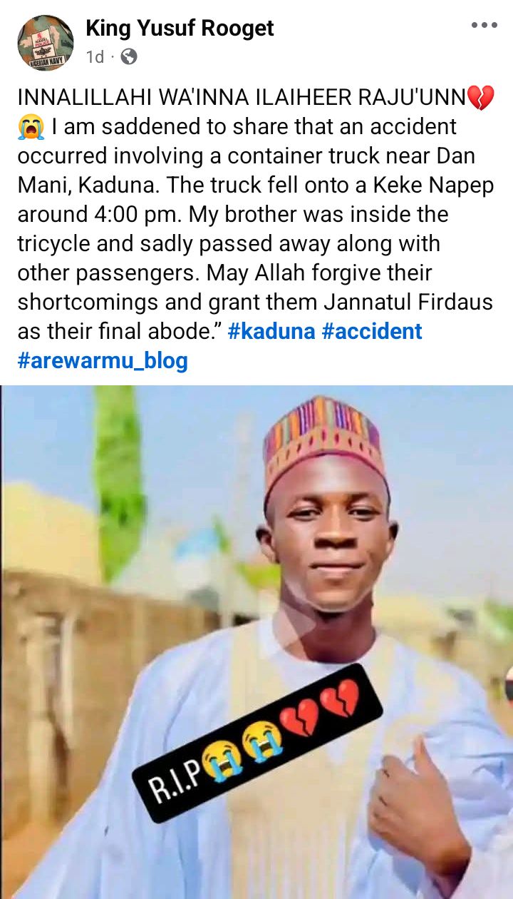 A resident of Dan Mani, who identified himself simply as Abubakar and witnessed the incident, described the scene as horrific, saying it took hours to recover the victims from beneath the container.