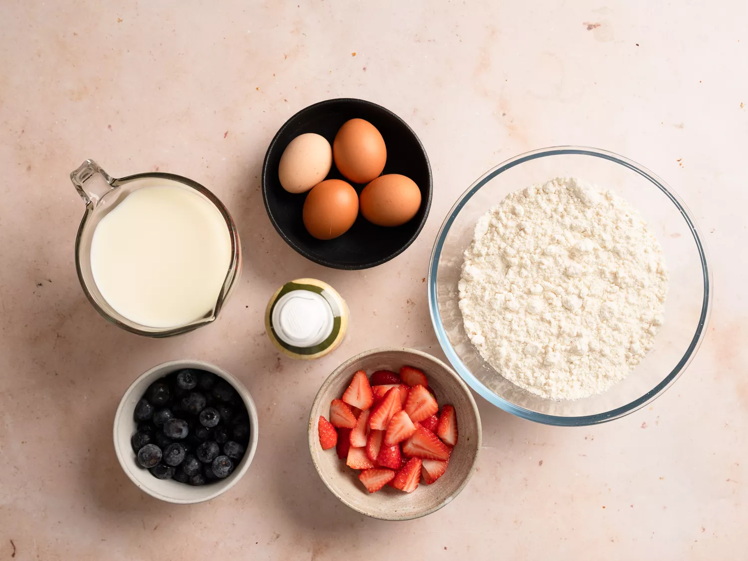 Bake in the preheated oven until the center of the pancake is springy to the touch and a toothpick inserted in the middle comes out clean, about 15 minutes.