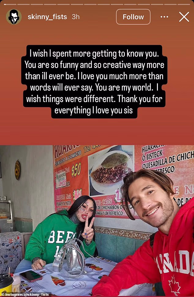 Ivan wrote, “I wish I’d spent more getting to know you. You are so funny and so creative, way more than I’ll ever be. I love you much more than words will ever say. You are my world. I wish things were different. Thank you for everything I love you sis.”