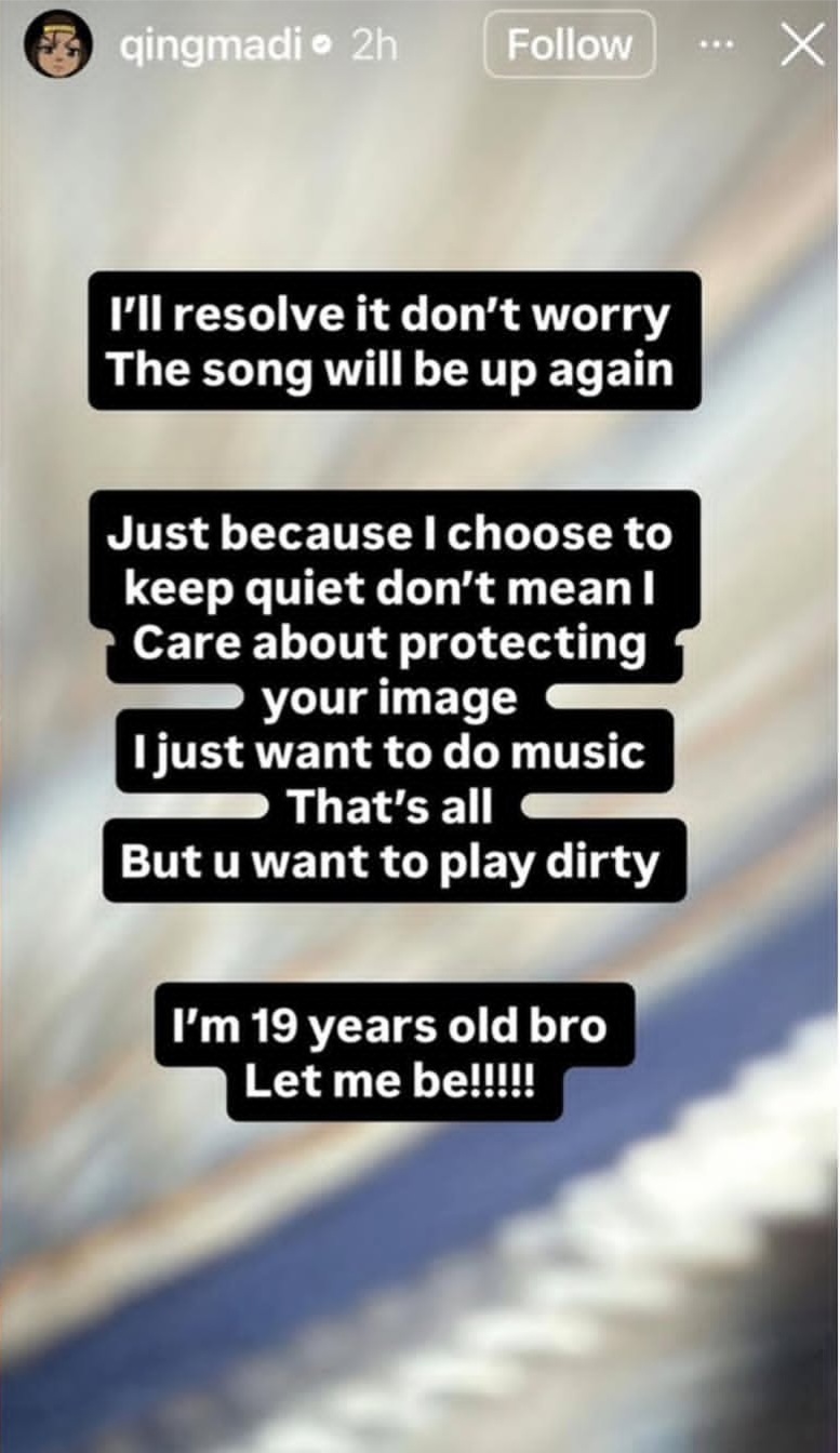 The young singer continued: “I’ll resolve it don’t worry. The song will be up again.