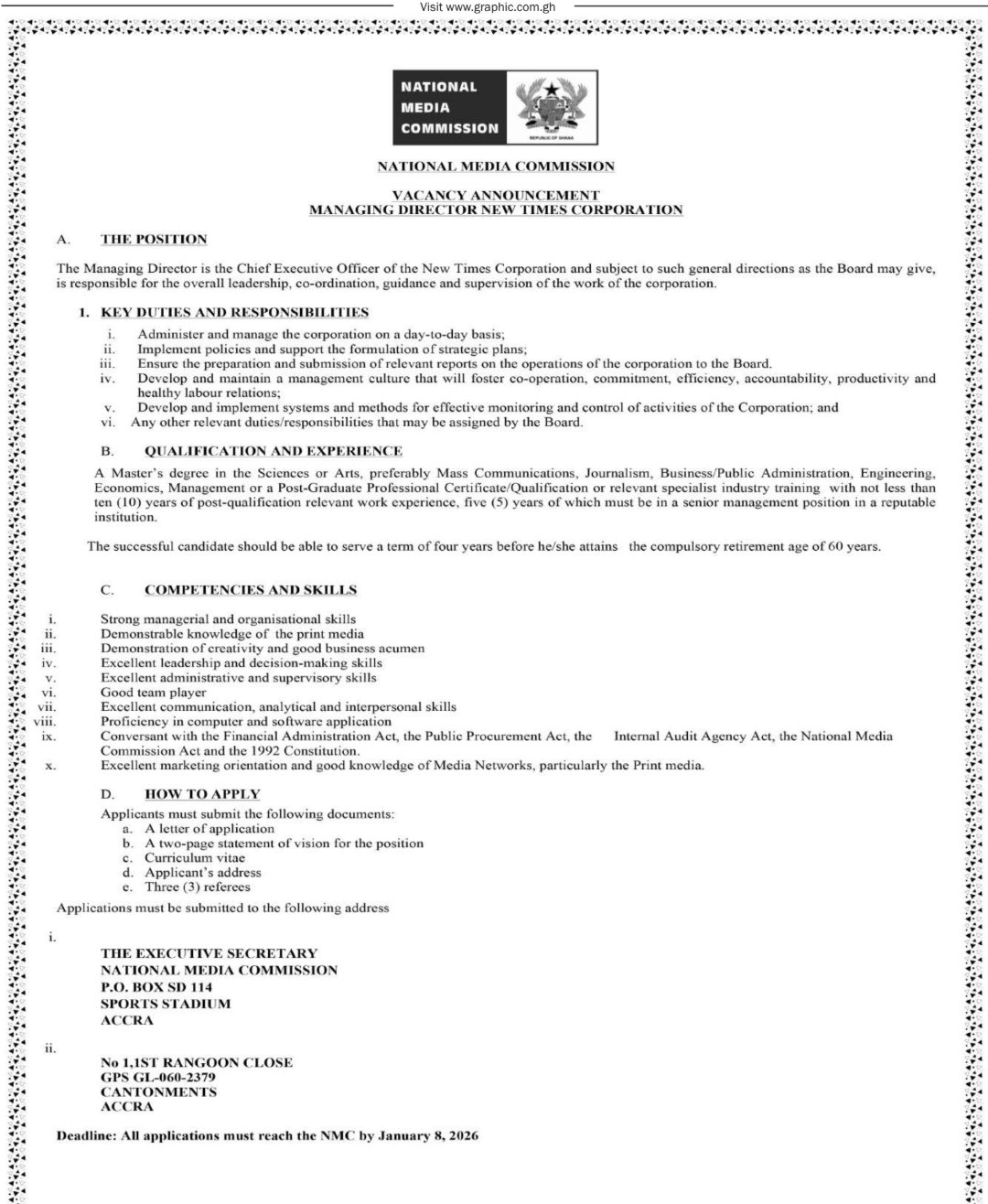 The post Thursday: Advertised Jobs In Newspapers Today appeared first on The Ghana Report.