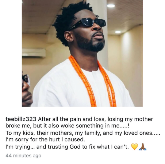 Teebillz lost his mum in June last year and has been grieving her loss since. In a post shared on IG this evening, the dad of four said the de@th of his mum broke him but also woke up something in him.