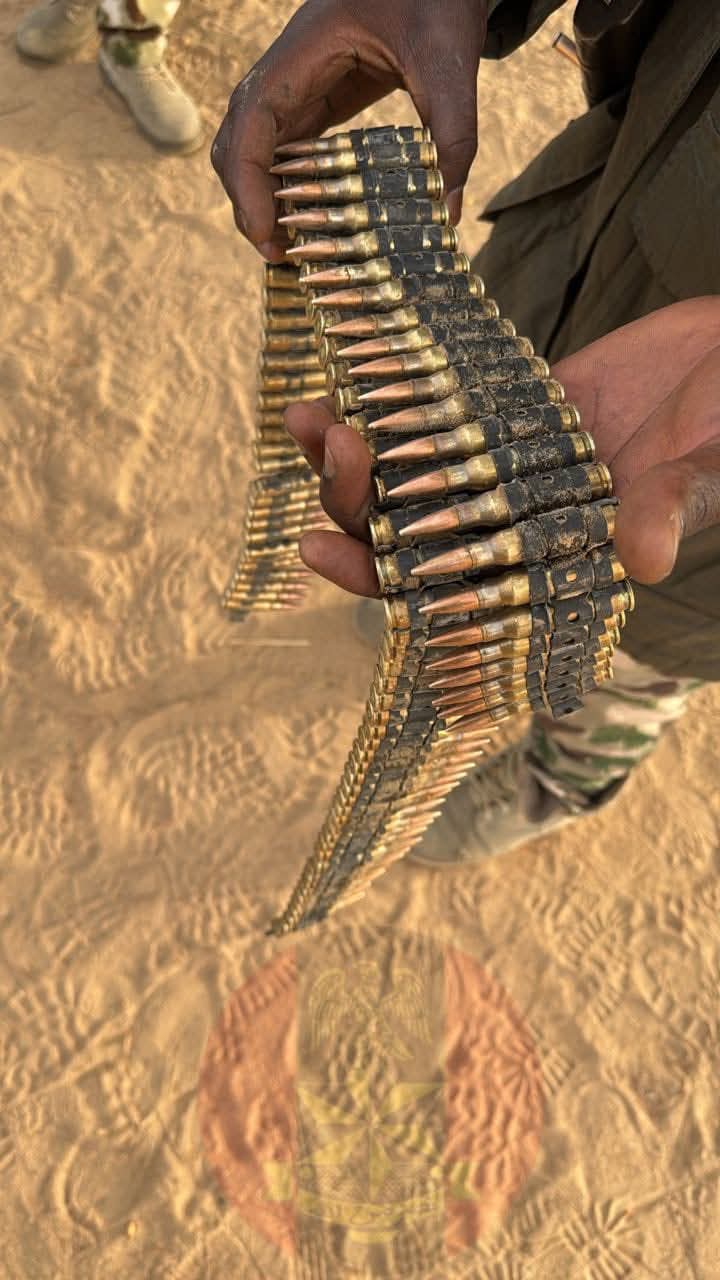“During the exploitation, troops recovered significant quantities of enemy weapons and equipment, including 3 PKT machine guns, 7 AK-47 rifles, 206 rounds of PKT ammunition, 418 rounds of anti-aircraft ammunition, 7 AK-47 magazines, 3 AK-74 magazines and 3 RPG bombs. Other items recovered include 2 camel bags, 3 head warmers, 1 blanket, 1 magazine carrier and 1 litre of engine oil, while 3 motorcycles used by the terrorists were also destroyed. In addition, 7 terrorist corpses were recovered while the miscreants buried another 20 bodies in shallow graves.