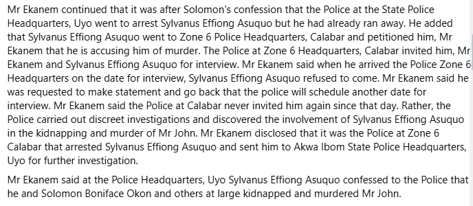 The suspects who are currently facing trial, confessed that they lured John to a secluded place, kidnapped him, and subsequently k!lled him.
