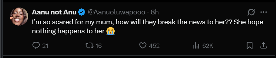 The user revealed that the loss comes just a year after burying his father, describing the situation as overwhelming for the family. He also expressed worry about how the news would be broken to their mother.