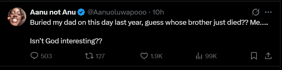 An X user has shared an emotional post while mourning the loss of his brother, raising concerns about the circumstances surrounding his marriage.