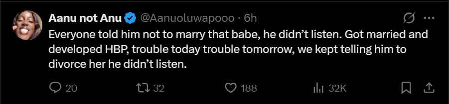 The post has since sparked reactions online, with many sharing their views on relationships, family advice, and personal decisions.