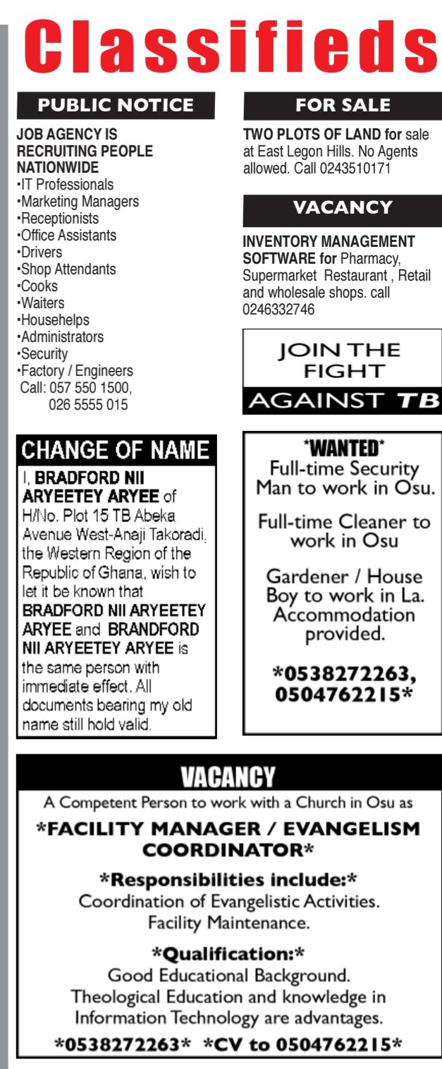The post Wednesday: Advertised Jobs In Newspapers Today appeared first on The Ghana Report.
