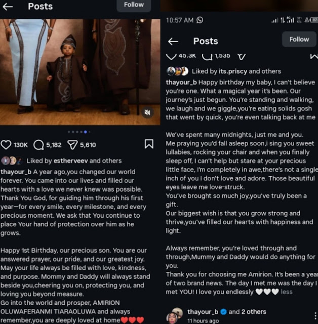 In an earlier post, Thayour also described Amirion as their answered prayer, their pride, and their greatest joy. She expressed gratitude to God for guiding him through his first year and prayed for divine protection as he continues to grow.