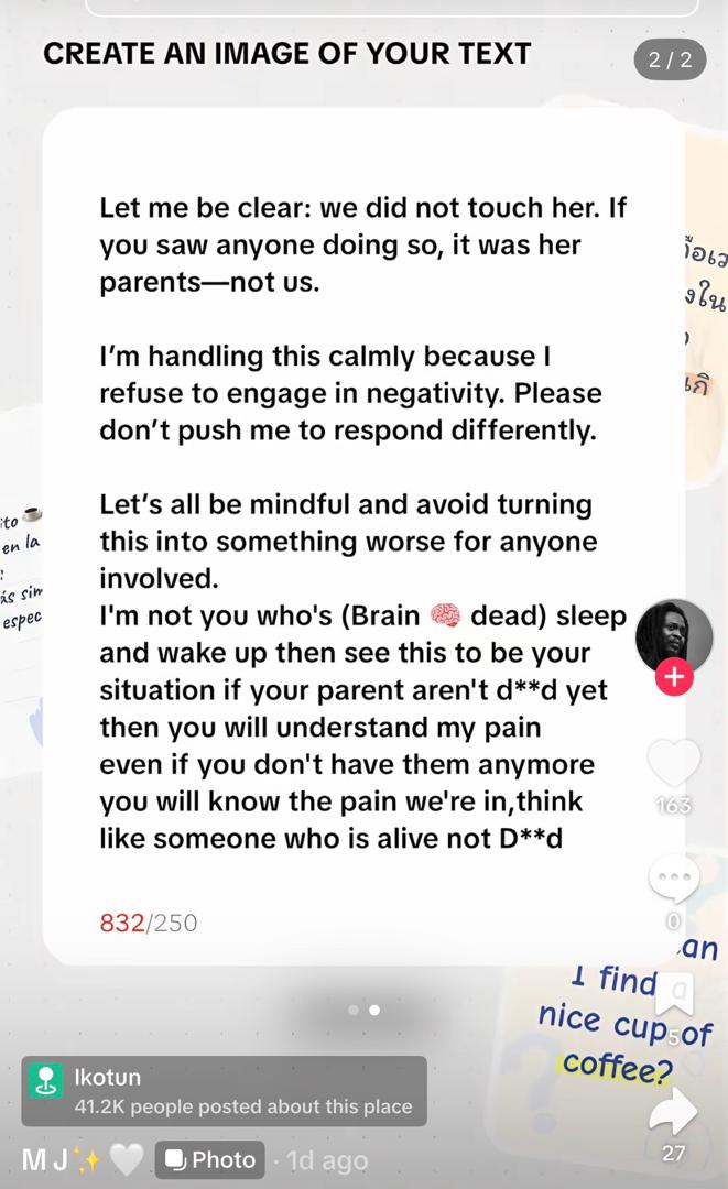 It turns out that the elderly woman’s child was able to trace Jola and effected her arrest. The child shared videos and photos of Lola in the police station. She stated that she will not watch anyone disrespect her mother no matter what happened.