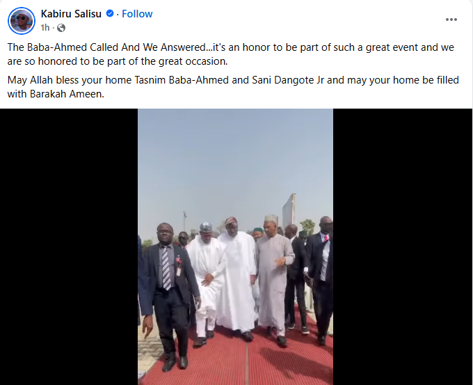 Tasnim, daughter of 2023 Labour Party vice-presidential candidate, Yusuf Datti Baba-Ahmed, and Sani Dangote Jr, the son of late Sani Dangote. have tied the knot.